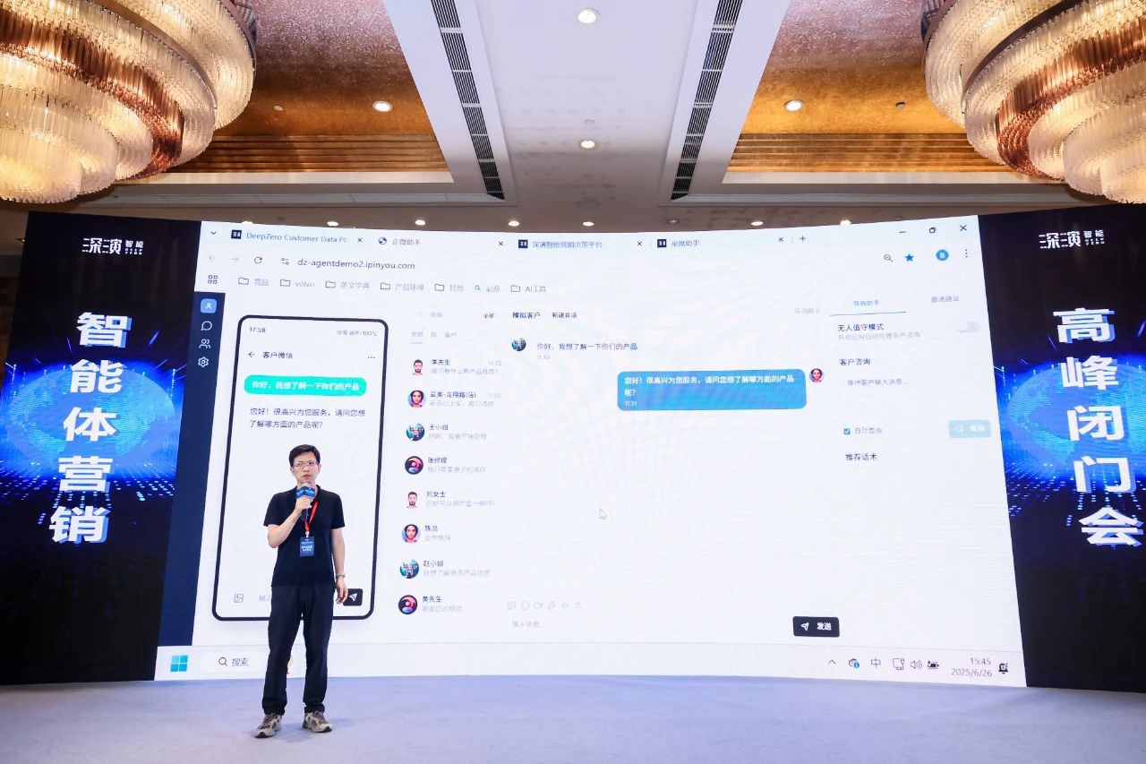作为已经成功帮助几十家大型企业 AI Agent落地的行业领导者,ibet智能DeepAgent Neo全面赋能营销域和销售域。 黄晓南和ibet智能CTO欧阳辰与ibet智能副总裁曹玉骥一起,为嘉宾现场演示了CRM、Social、销售、客服等场景的全面智能体,情景展现了DeepAgent Neo如何全面赋能企业各个环节。